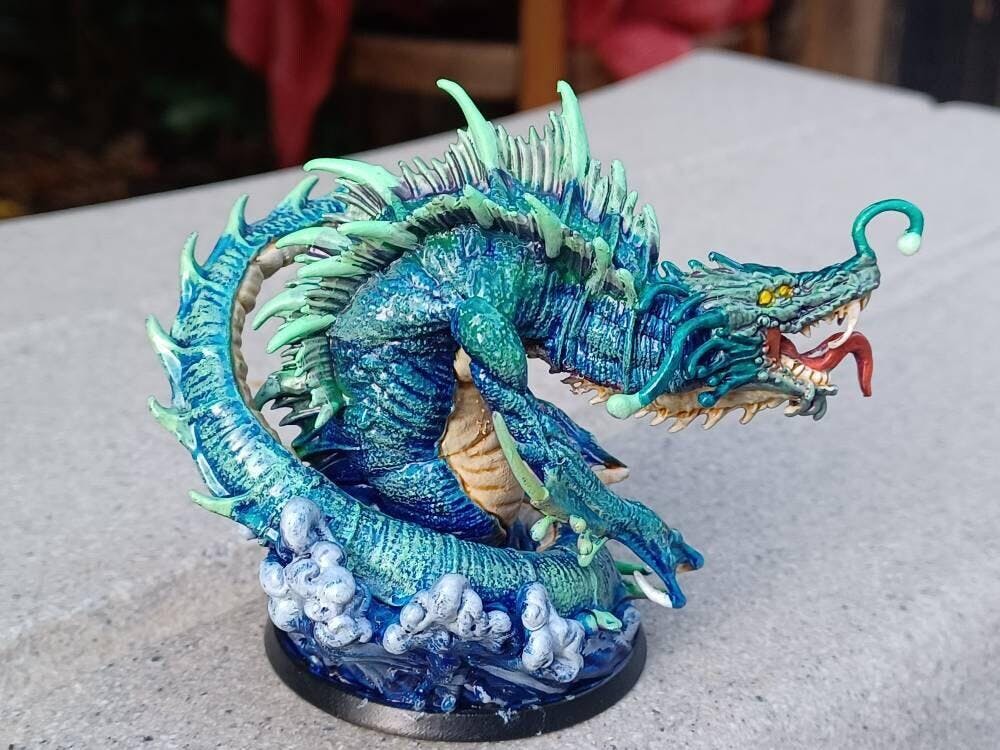 The Deep Sea Serpent is a tabletop RPG miniature that comes in 32mm or 75mm scale and would be a great addition to any campaign. This is considered a large creature according to 5e scale.